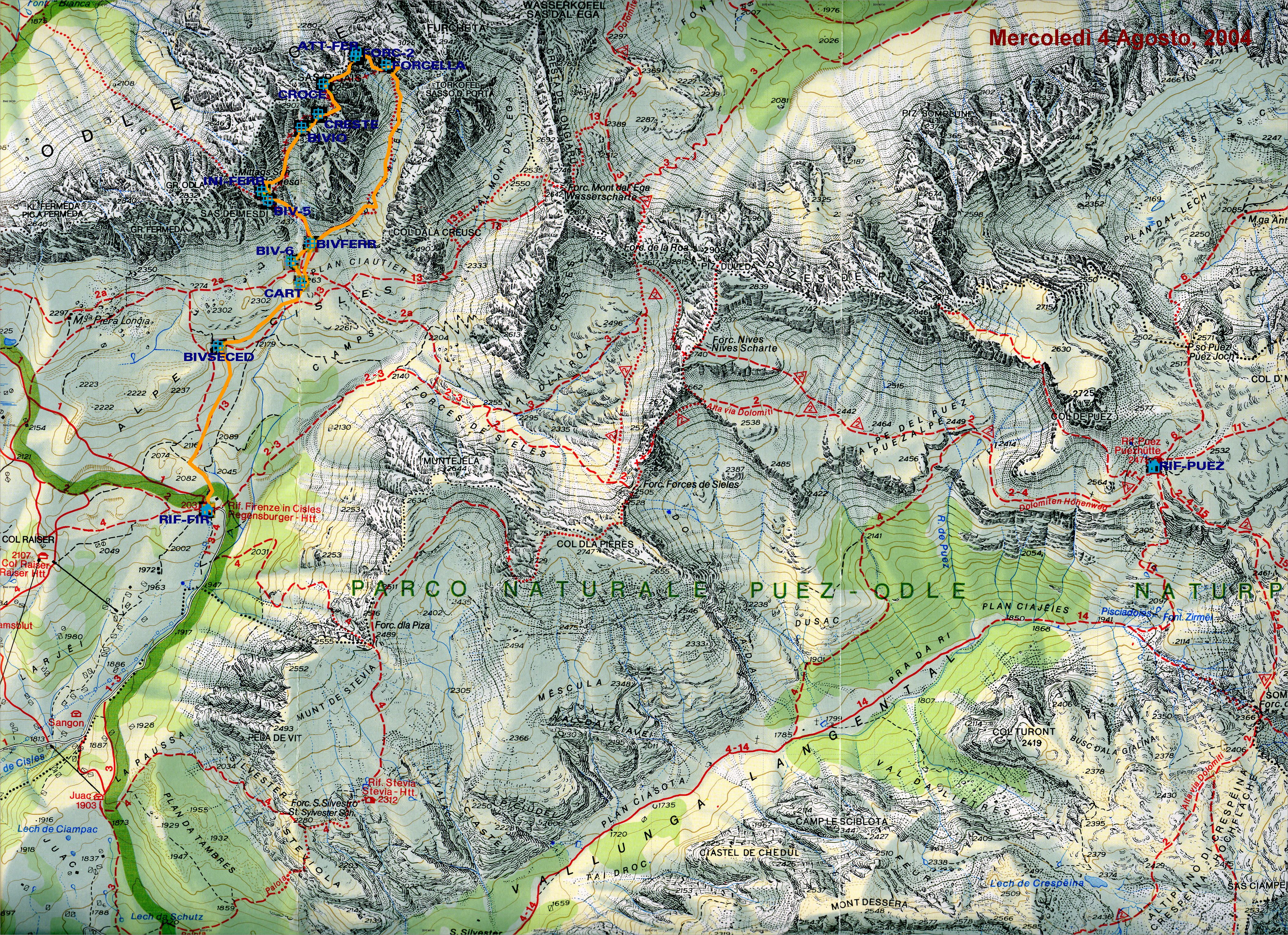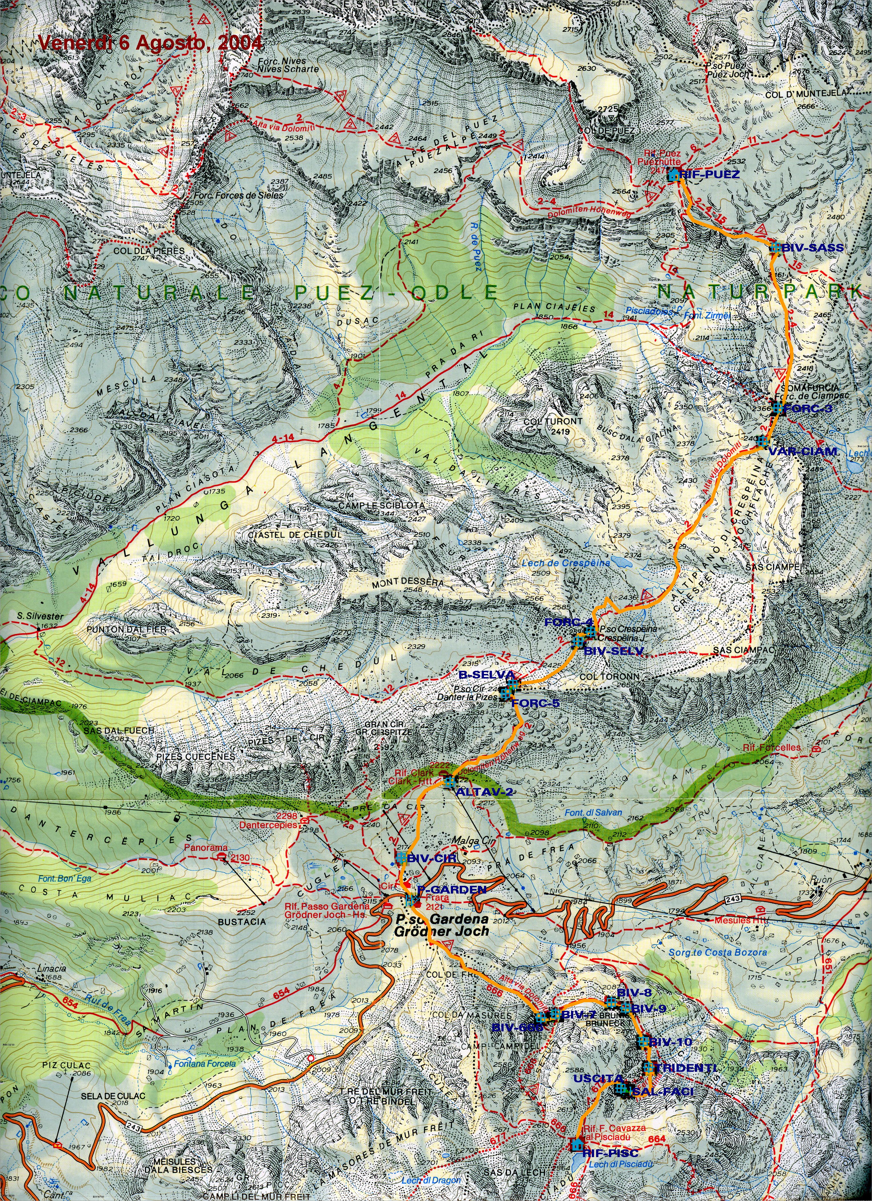 3-8 Agosto, 2004: percorso itinerante nel gruppo Puez-Odle e Sella